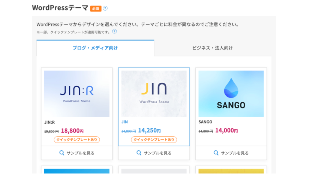 次に出てくるのが有料テーマの購入画面。